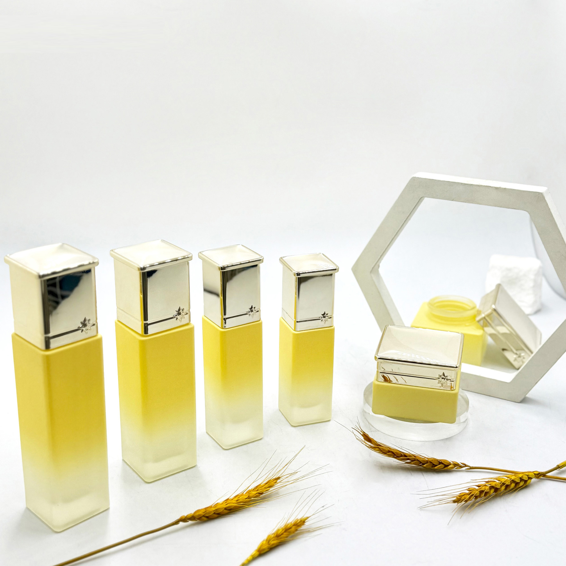 • ✔ Frosted and gradient glass surface for luxury skincare packaging